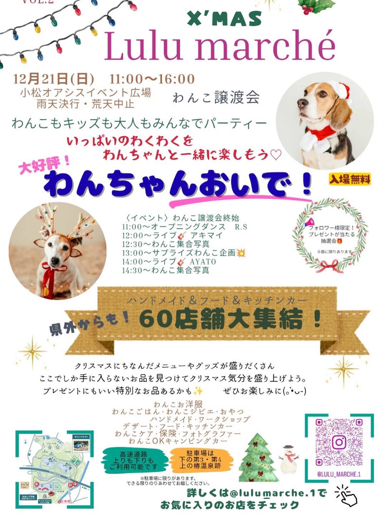 Lulu marche Xmas SCHEDULE 2025/12/21(日) 14:00 - 小松オアシスイベント広場 地図を表示 Lulu Marche様 公式Instagram URLをコピーする 報告する